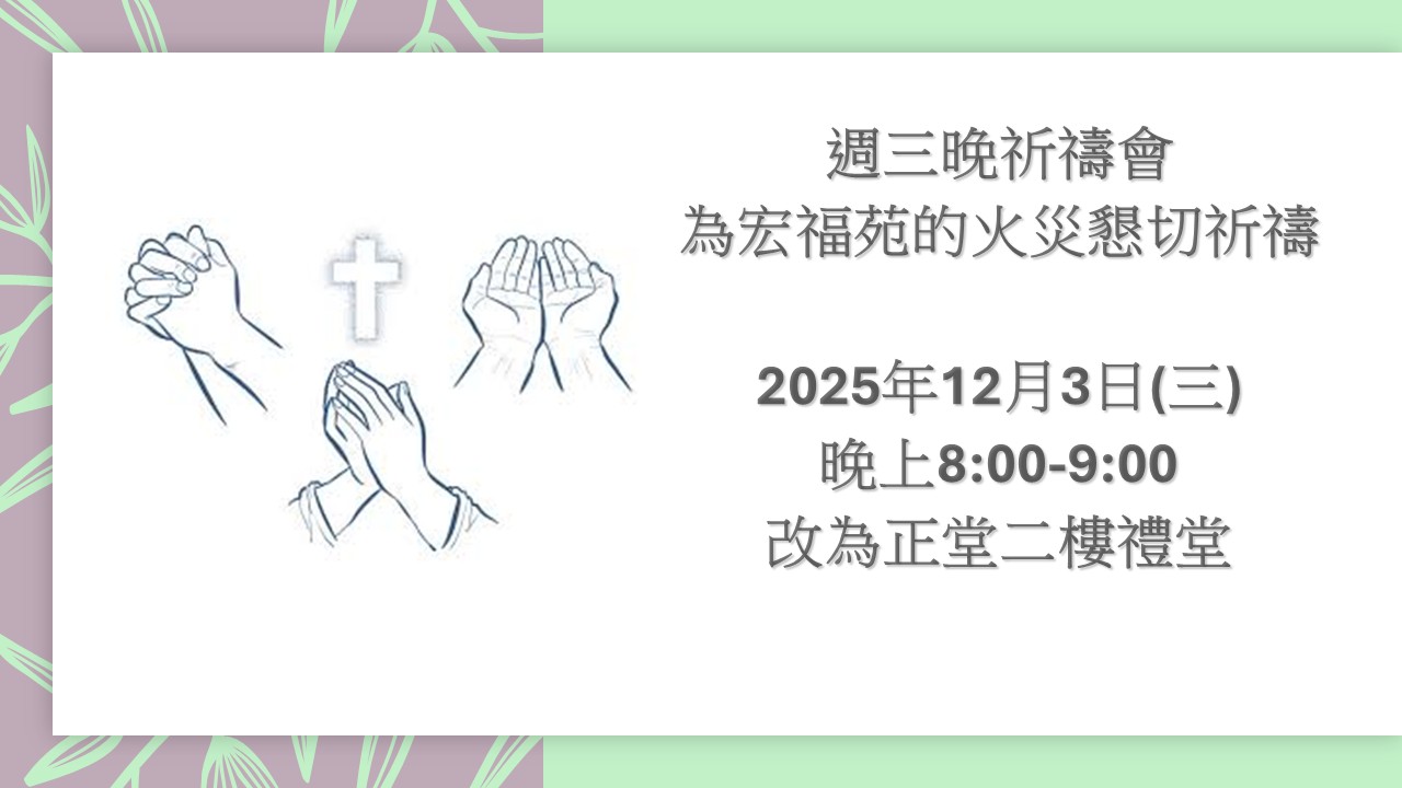 教會 • 週三祈禱會(12月3日) 地點:正堂2樓禮堂
