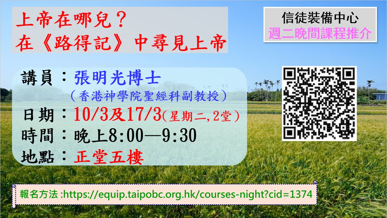 信裝中心 • 上帝在哪兒?在《路德記》中尋見上帝(3月10日及17日,共兩堂)
